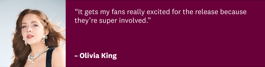 Olivia empowers her fans by letting them vote on every aspect of her release — from her outfit in the cover art to the song title.