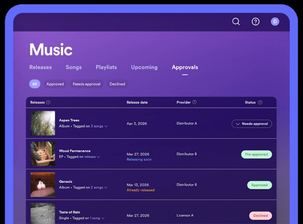 If you approve a release, it will go live under your profile on its release date and count toward your stats and fan recommendations as usual. If you decline it — or take no action — it won’t appear on your Spotify Artist profile.