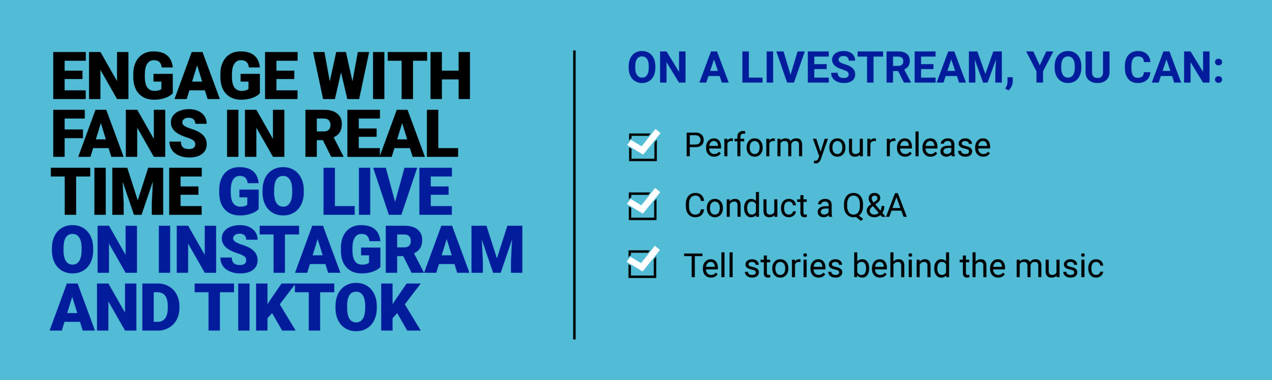 Going live sends notifications to your followers and creates an immediate way to connect in real time. You can stream your release, play songs live, answer questions, or walk fans through the story behind the music. Live streams help deepen fan relationships and make release day feel interactive.