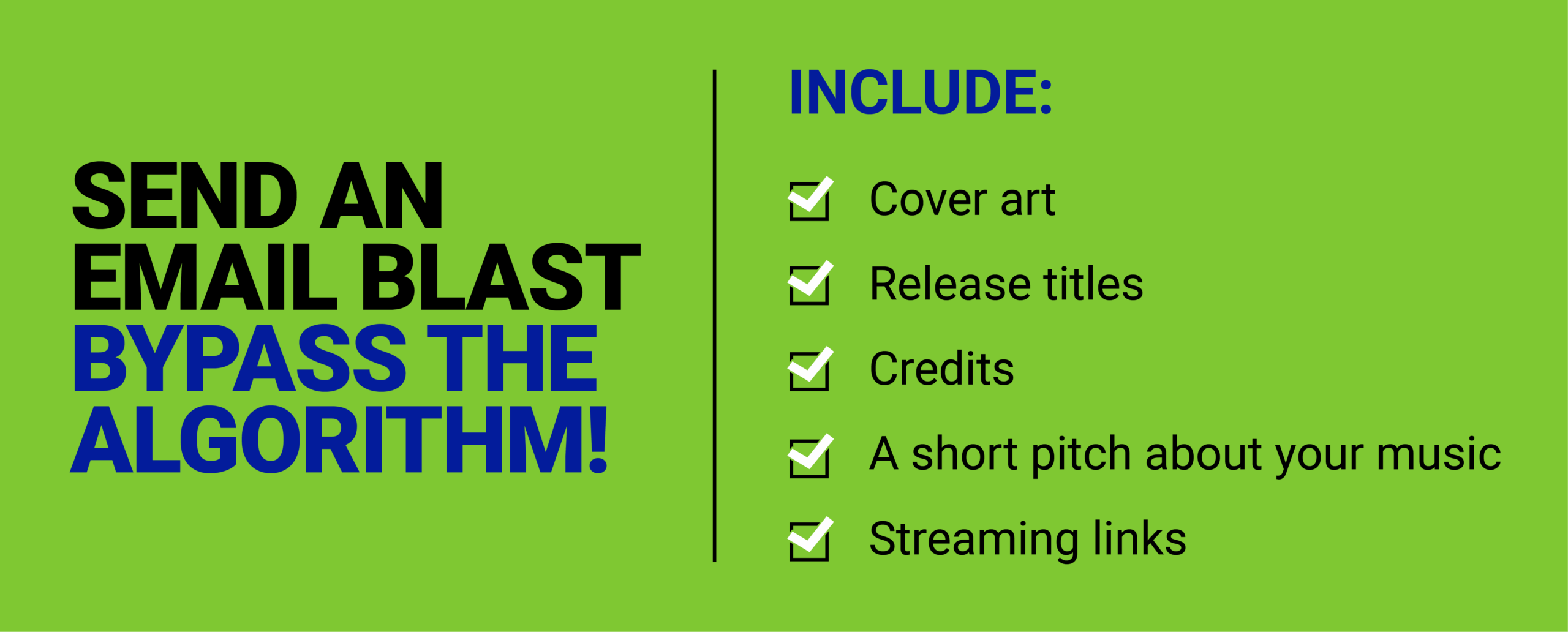 Email is one of the most effective ways to reach your fans directly on release day—no algorithm involved. Draft your release announcement email in advance and schedule it to send on release day.