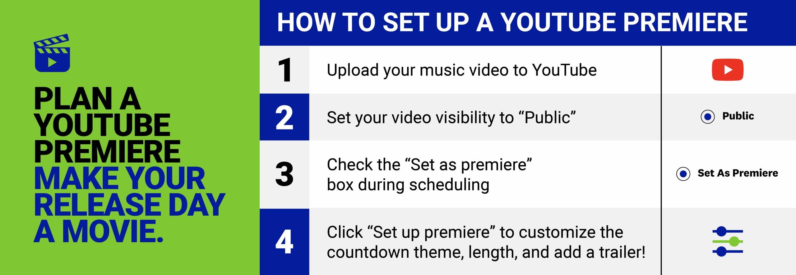 If you have a music video ready, upload it ahead of time and schedule it as a YouTube Premiere. Premieres allow fans to watch together as soon as the video goes live and chat with you in real time. This encourages fan engagement and builds community on your big day.